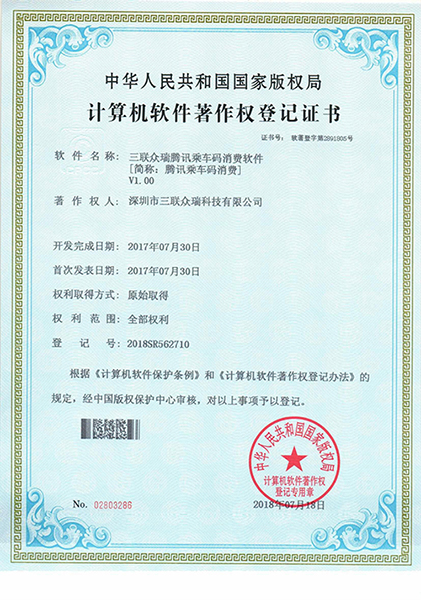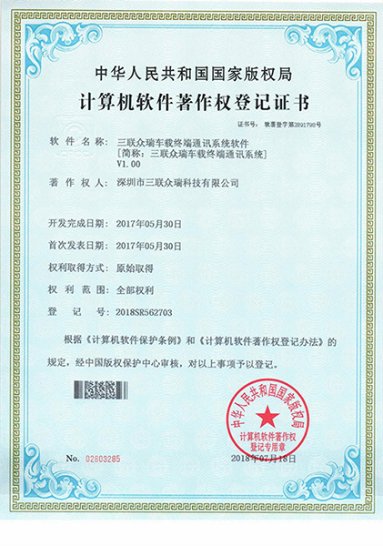 近日,深圳市三联众瑞科技有限公司成功获得国家版权局颁发的4项计算机软件著作权登记证书。